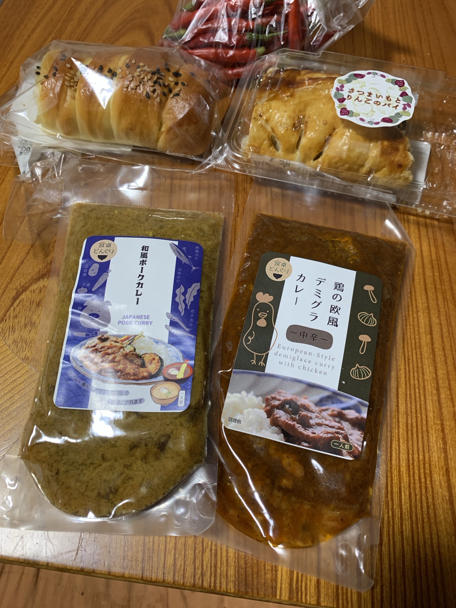 写真を撮る前に、パンとパイは一口食べてしまいました。