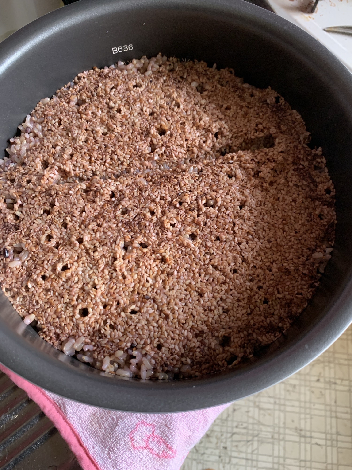 胡麻のあと混ぜは大変そうで、一緒に炊いています。