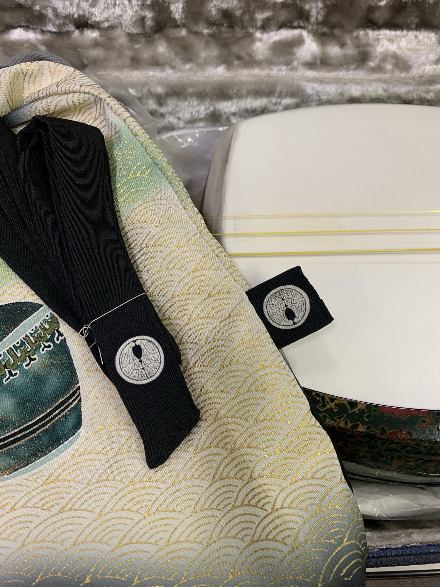 母方の家紋、抱き茗荷を残して、ワンポイントに入れて