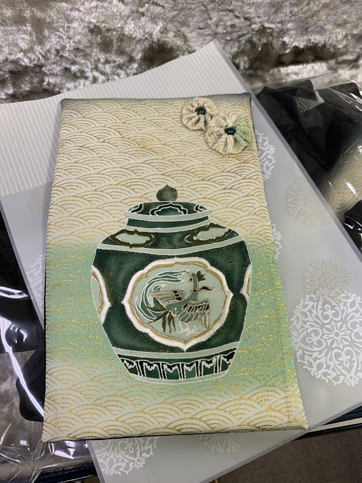 形見の黒留袖を、洗い張りをして、三味線の長袋にしました。